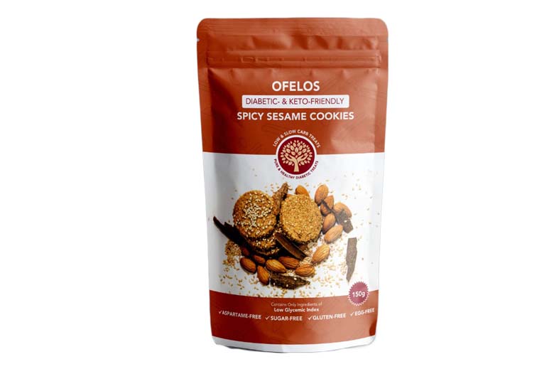 After ten years of research and experimentation, all while consulting nutritionists, Ofelos presents to you the delicious Ofelos Spicy Sesame flavoured cookies that are a worry-free delight to not only diabetics but also to those who follow a keto-diet.